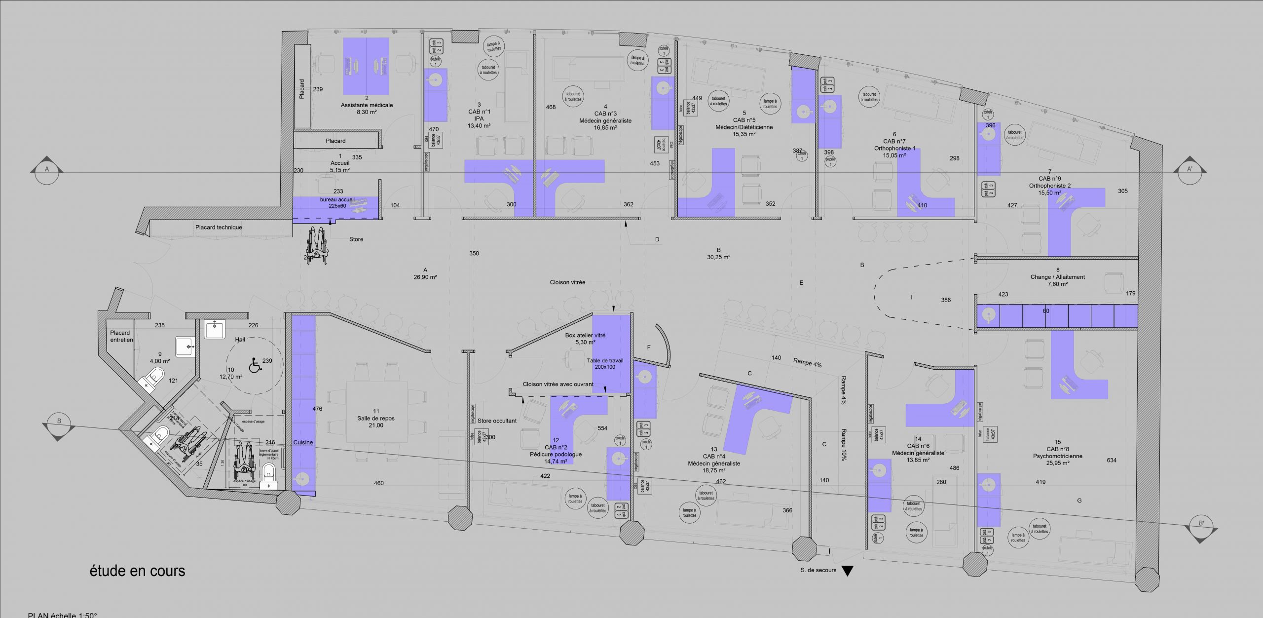 L’atelier travaille sur l’aménagement d’une nouvelle Maison de Santé Pluri-professionnelle à St Denis dans le quartier Basilique. Cette année d’anciens locaux de bureaux accueilleront des cabinets de consultation (médecine générale/médecine diététique / orthophonie / pédicure-podologue / soins infirmiers / psychomotricité …) et les locaux associés à son fonctionnement.